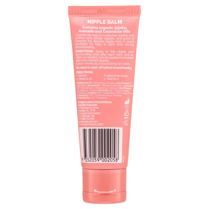 FREE from lanolin, petrochemicals and mineral oil, GAIA nipple balm is made from pure, edible organic oils, including sunflower and avocado, so there is no need to rinse before feeding.
