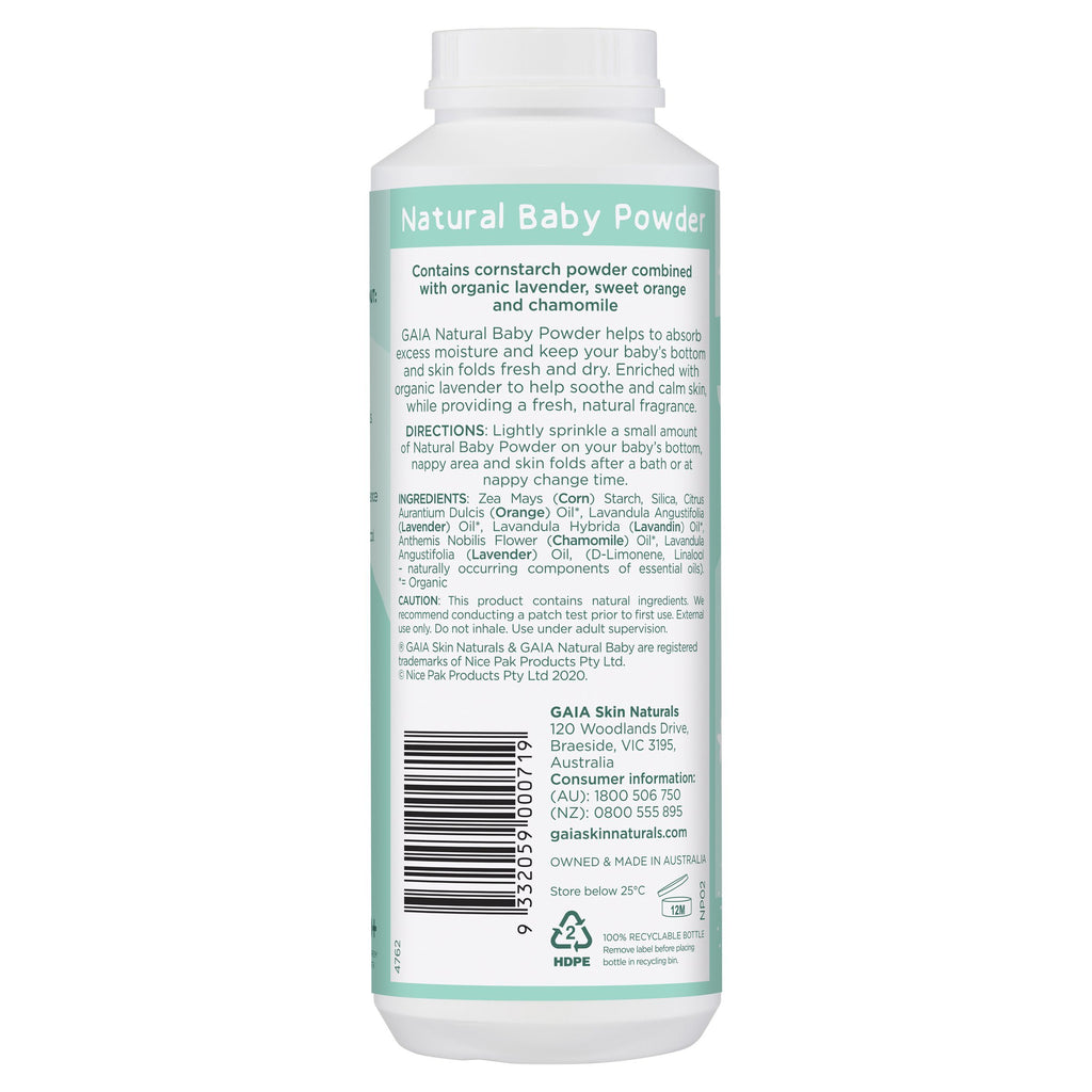 Contains pure cornstarch powder, organic lavender and organic chamomile pure essential oils to soothe and calm skin.