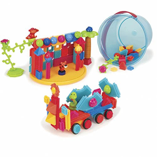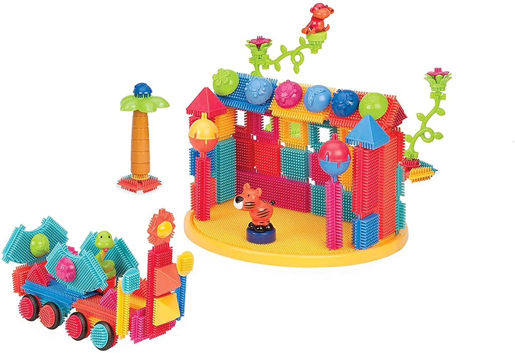 / 128Pcs Jungle Adventure Bristle Blocks in Bucket with Animal Figurines | STEM Creativity Building Toys | BPA Free | 2years+ | 3088C1Z