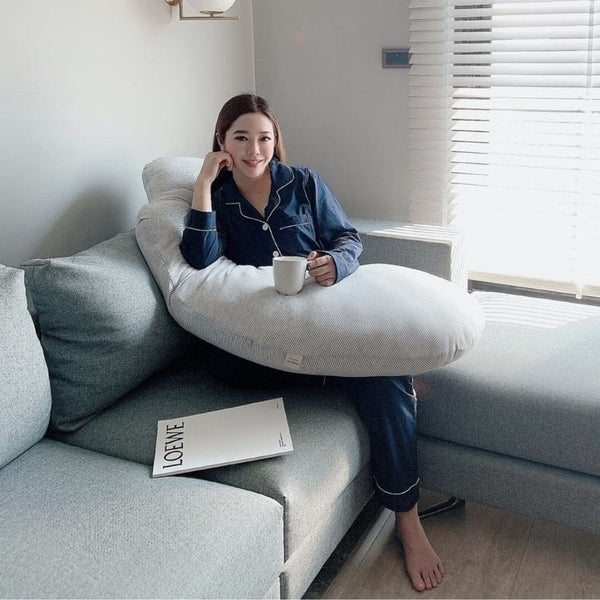 Comfort Series Maternity Pillow - 100% USA Cotton (Stripe Gray)